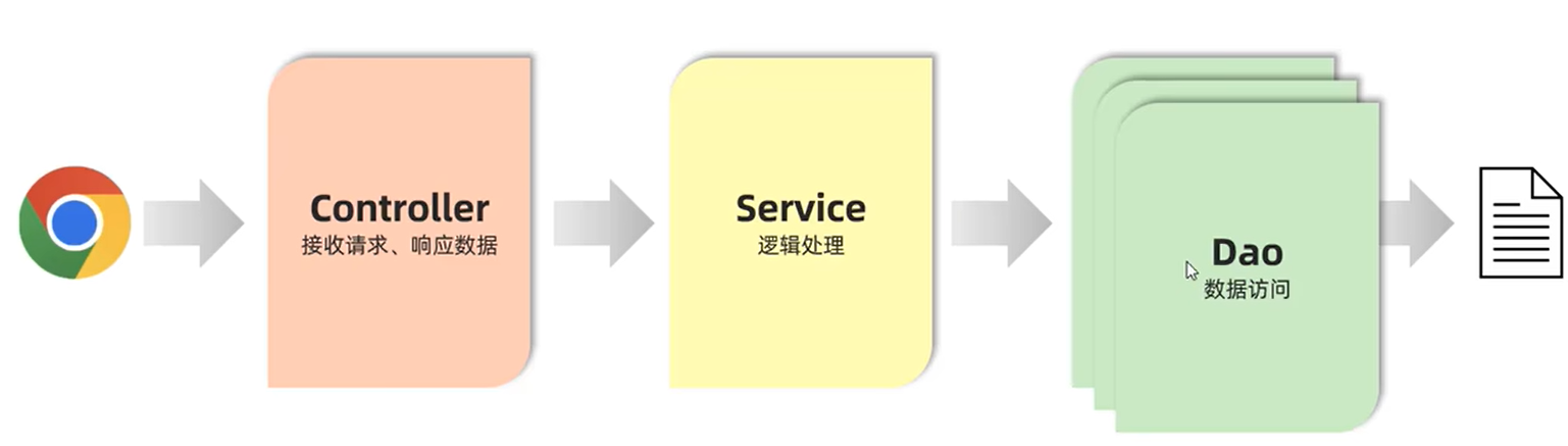 controller层:控制层,接收前端发送的请求,对请求进行处理,并响应数据。